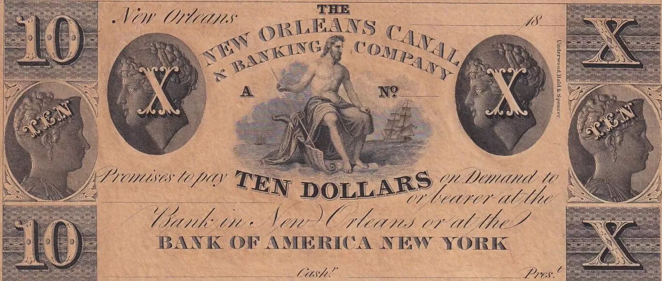 This $10 note from the New Orleans Canal and Banking Co. provides insight into the complex banking and monetary system of the United States in the mid-19th century.