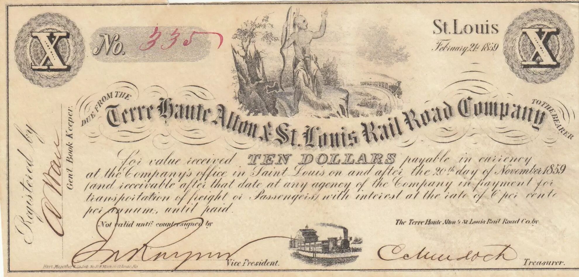 Home > > USA 10 Dollars - Terre Haute Alton and St Louis Rail Road Company - 20-11-1859