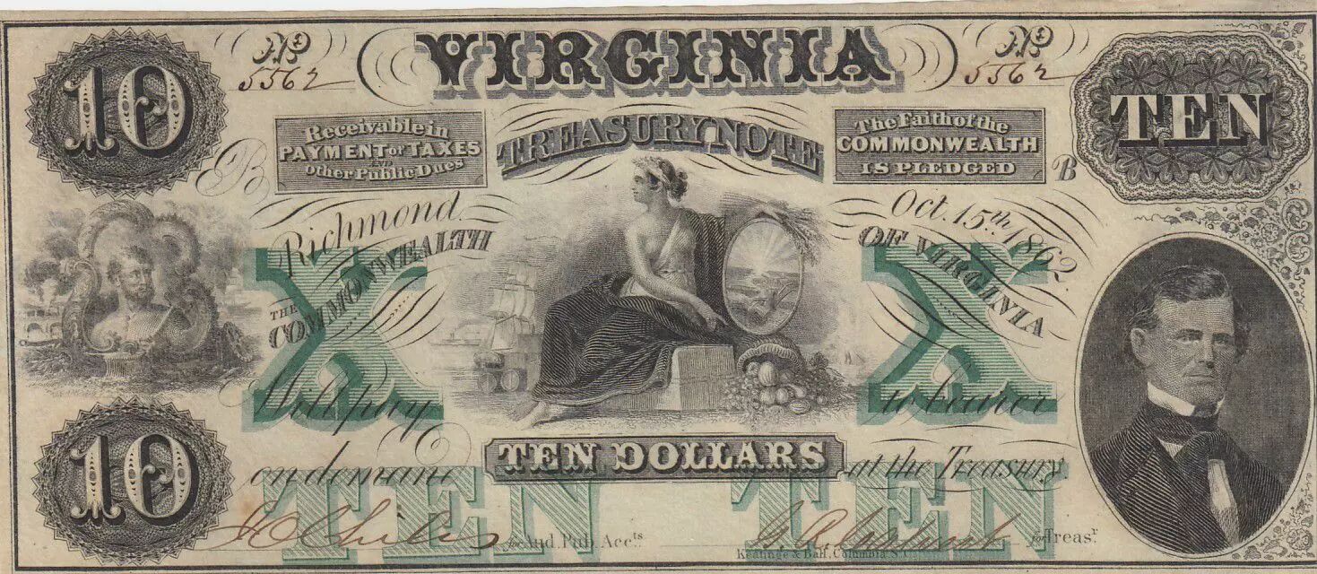Home > > USA 10 Dollars Virginia Treasury note - 1862 - UNC
