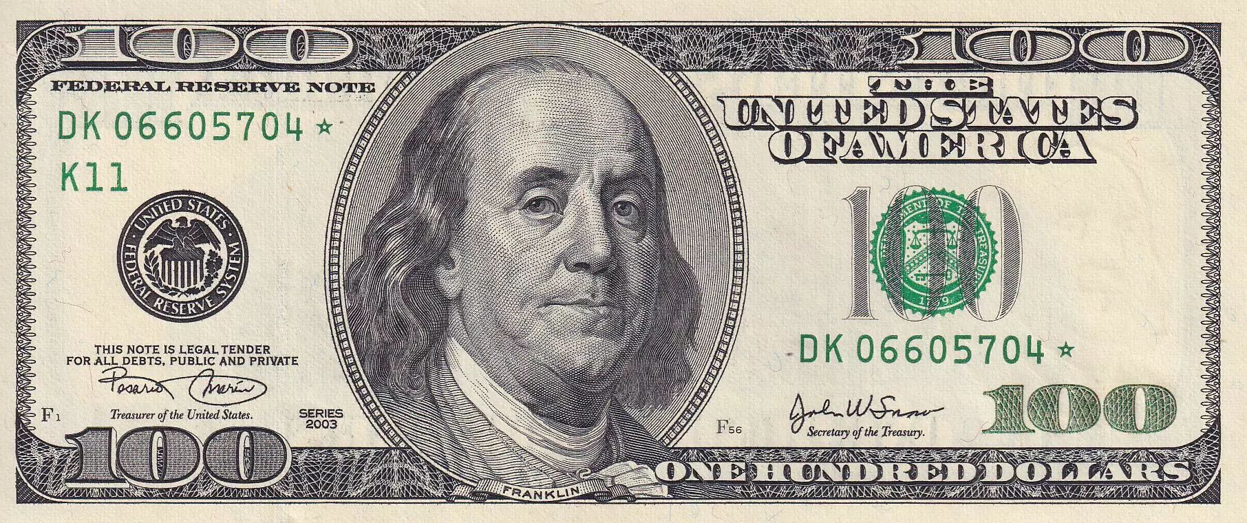 Banknote USA 100 Dollars - Benjamin Franklin - K Dallas - 2003 - Replacement star - P.519r