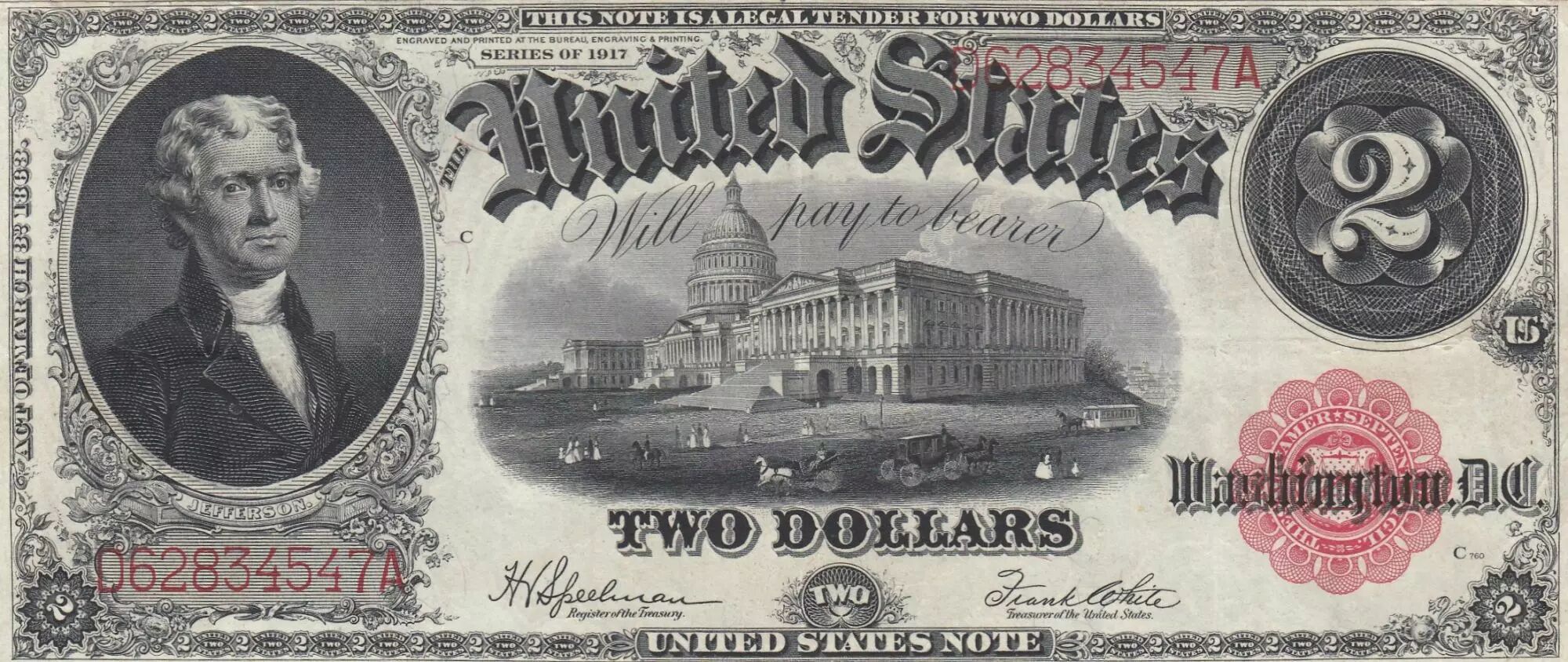 Billet USA 2 Dollars - Jefferson - 1917 - Série DA