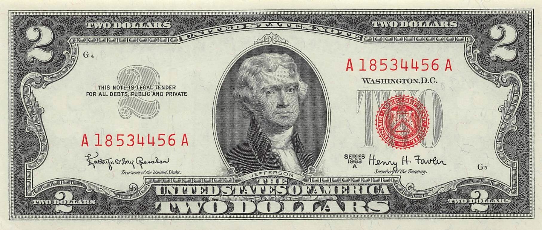 Billet USA 2 Dollars - Jefferson - Série 1963 A - P.382