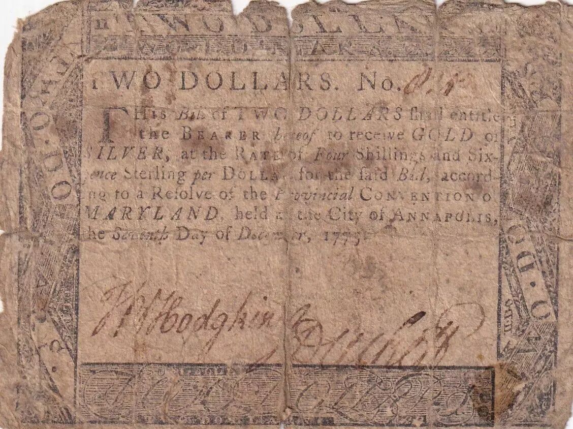 Banknote USA 2 Dollars - Maryland - Colonial - 07-12-1775 - Rare