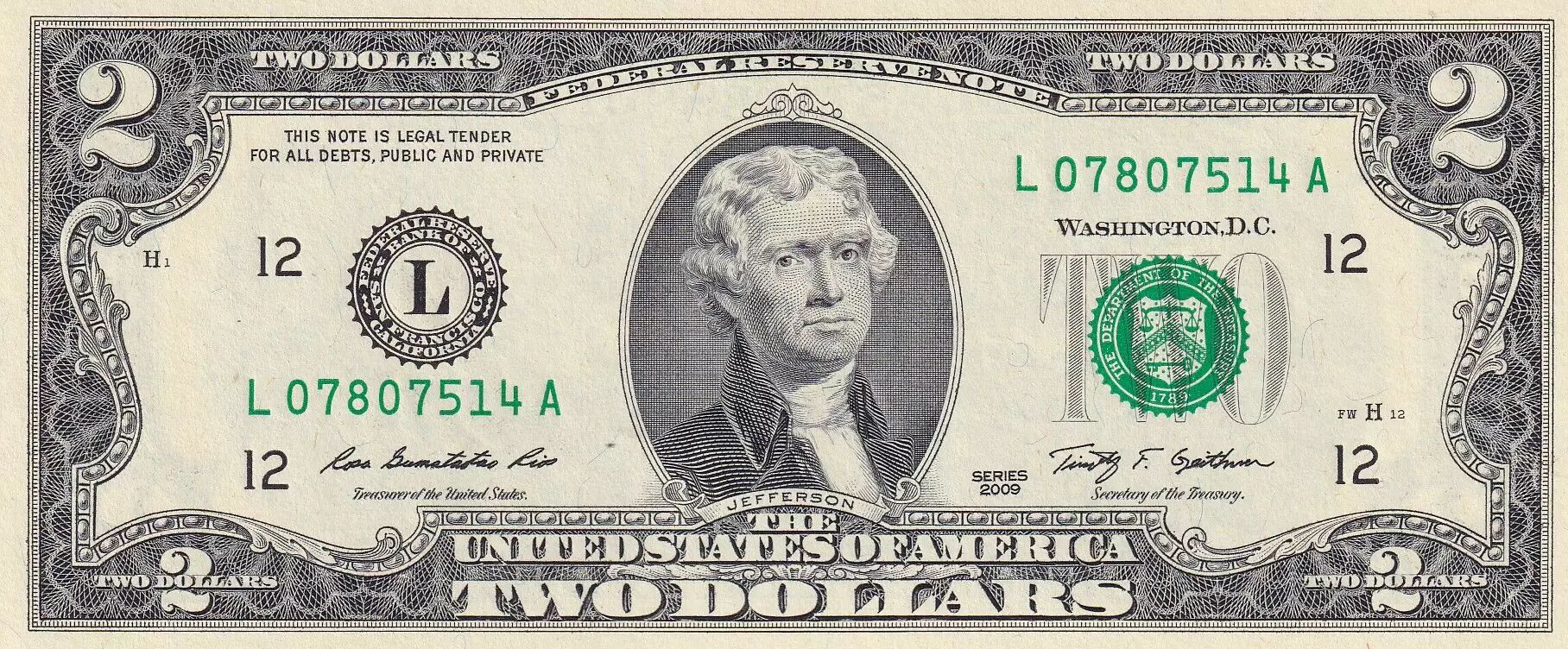 Accueil > Archivage > USA 2 Dollars - Thomas Jefferson - 2009 - L - P.503A