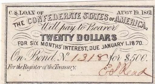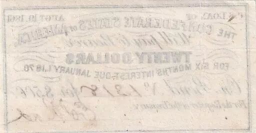Banknote USA 20 Dollars - Confédérate States - CS loan - 1870
