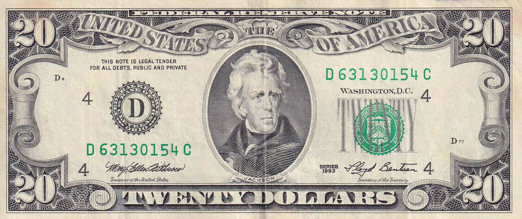 Accueil > Archivage > USA 20 Dollars - Jackson - 1993 - D - P.493