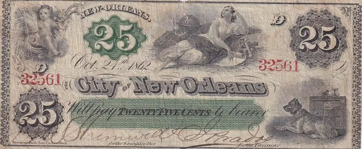 Banknote USA 25 Cents City of New Orleans - 1862 - Serial 32561