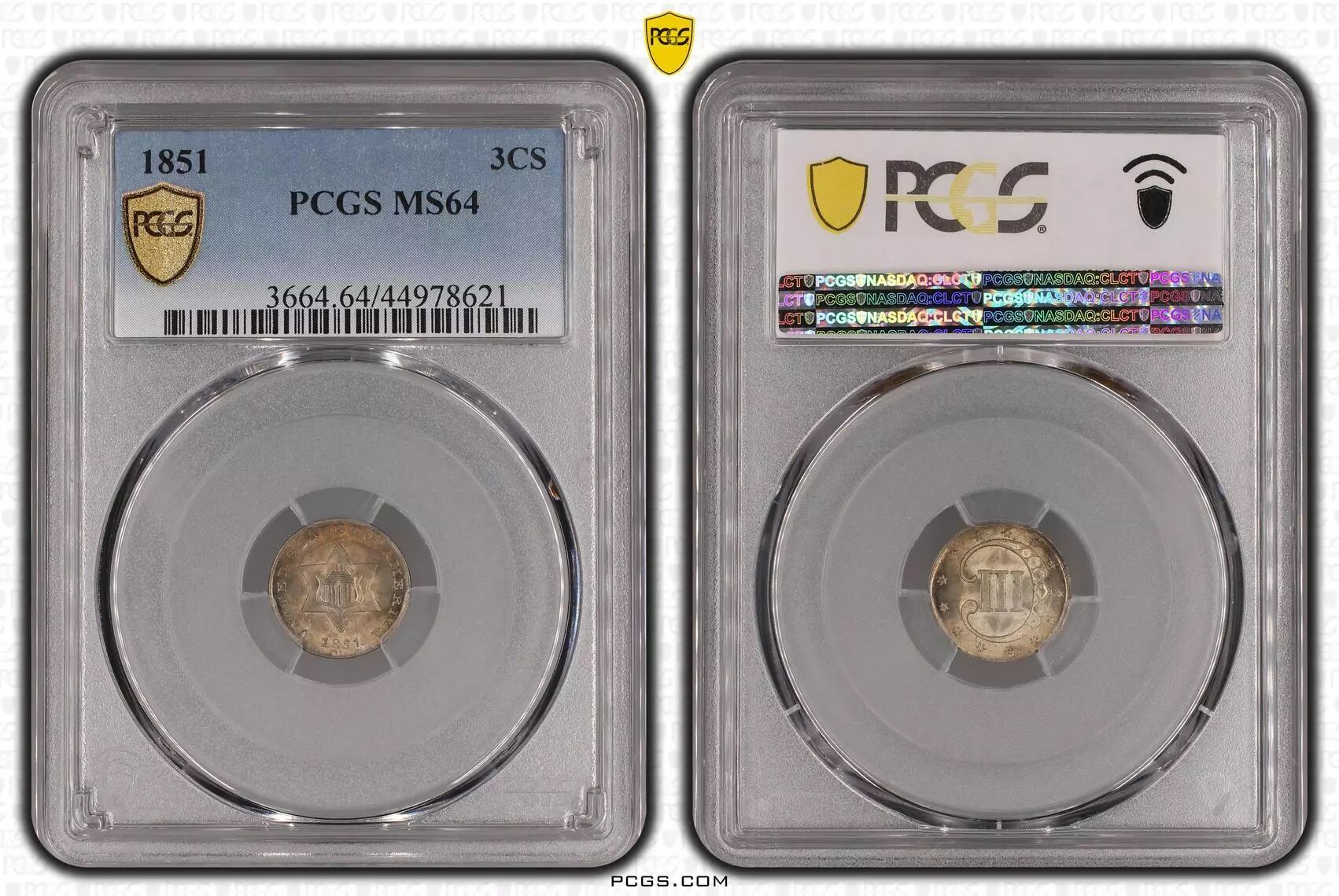 Accueil > > USA 3 Silver Cents - 1851 - PCGS MS 64