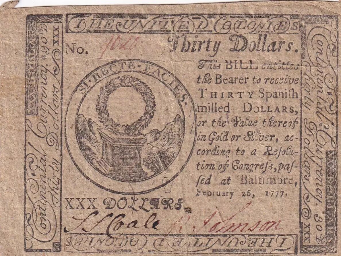 Accueil > Archivage > USA 30 Dollars Continental Colonial Currency - Baltimore - 26-09-1778