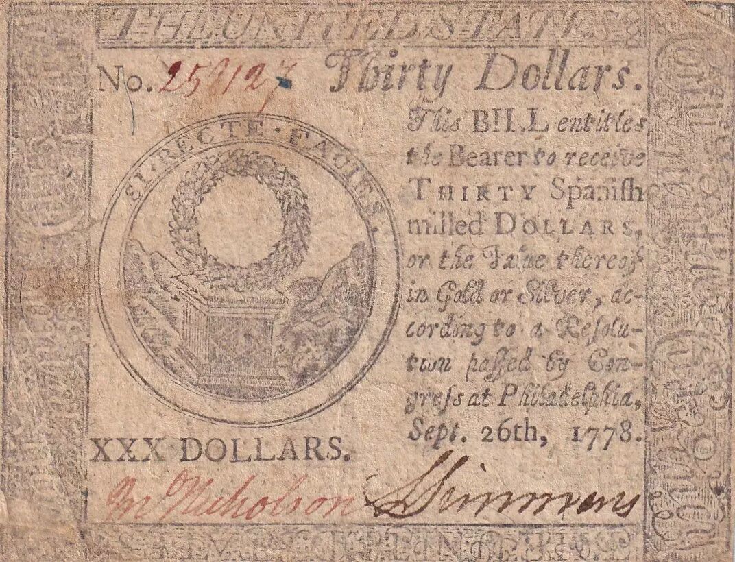 Billet USA 30 Dollars Continental Colonial Currency - Philadelphie - 26-09-1778