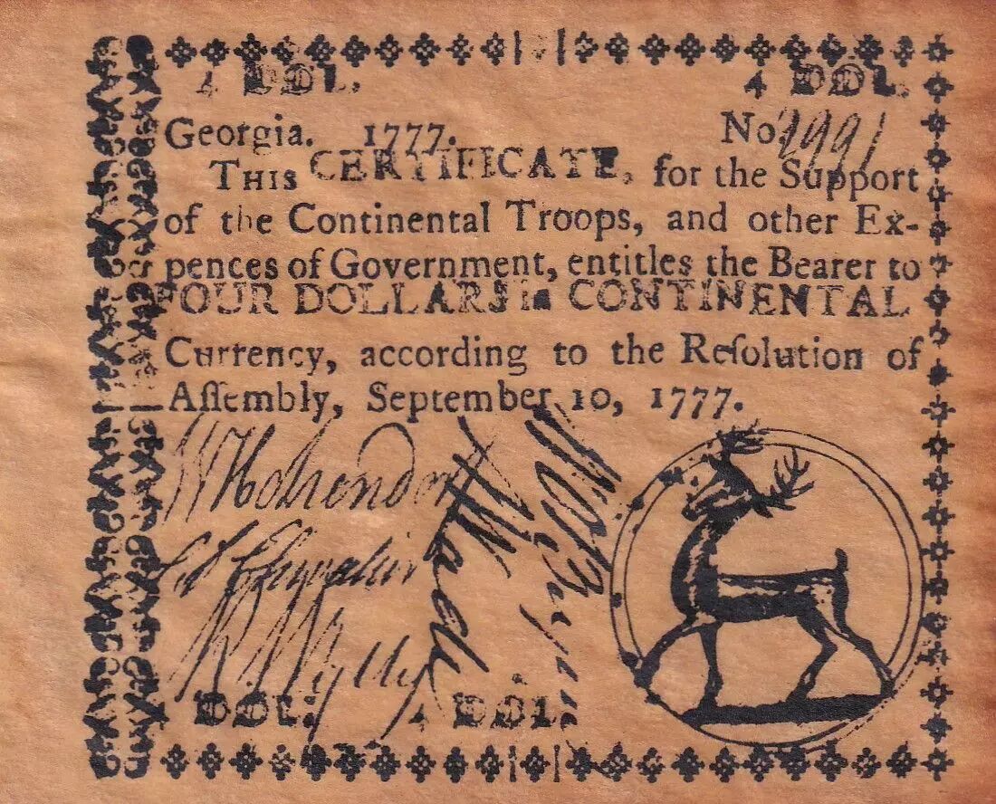 Billet USA 4 Dollars - Georgie - Colonial - 10-09-1777 - Faux