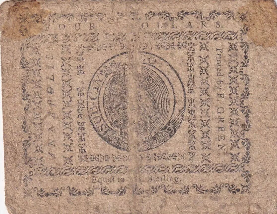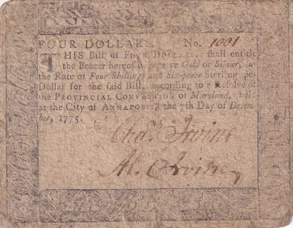 Banknote USA 4 Dollars - Maryland - Colonial - 07-12-1775 - Rare