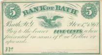 Banknote USA 5 Cents Bank of Bath - 1862 - SPL