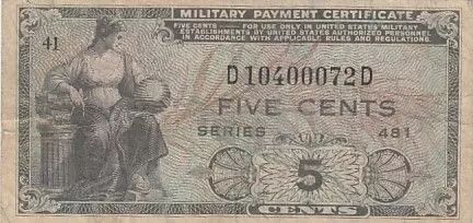 Billet USA 5 cents - Billet militaire - Series 481 - Numéro 41 - 1951