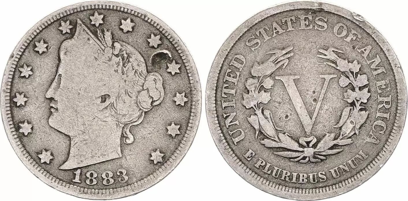 Pièce USA 5 Cents Liberté - 1883 - Sans "Cents"