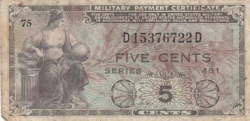 Banknote USA 5 cents - Military Banknote - Series 481 - Numéro 75 - 1951