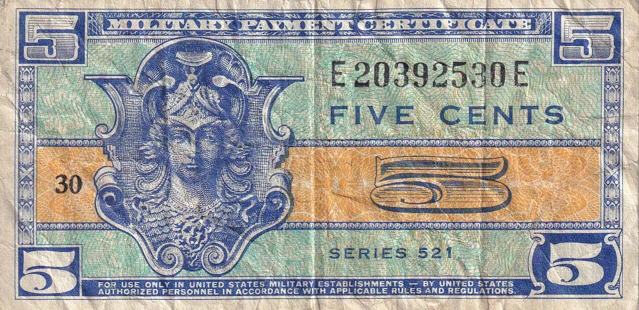 Banknote USA 5 Cents Military Cerificate - 1954 - Serial 521 - M.29