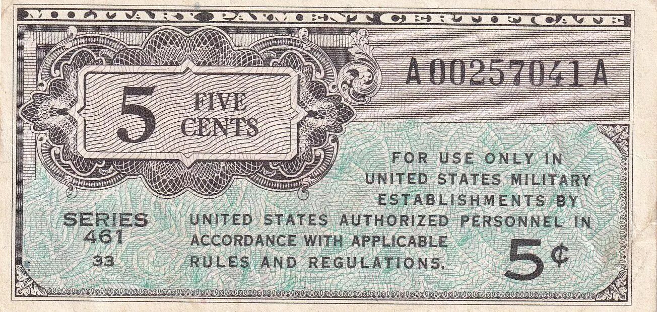 Accueil > Archivage > USA 5 Cents - Military Certificate - ND (1946) - Série 461 - P.M1