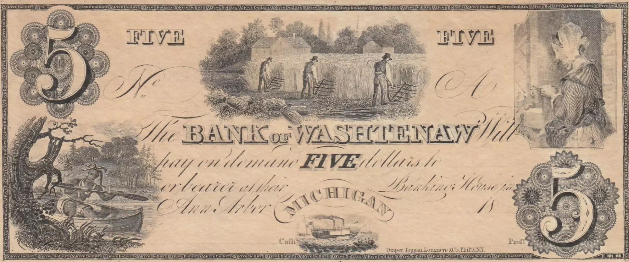 Billet USA 5 Dollars - Banque de Washtenaw - Michigan - Remainder - 1835