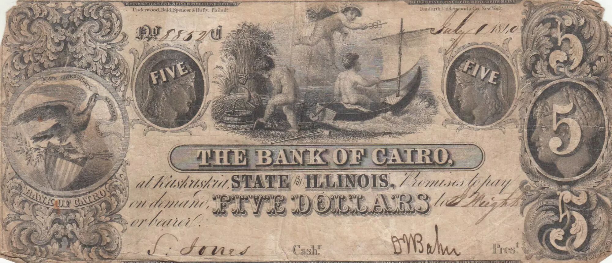 Billet USA 5 Dollars - Banque du Cairo - Illinois -07-1840