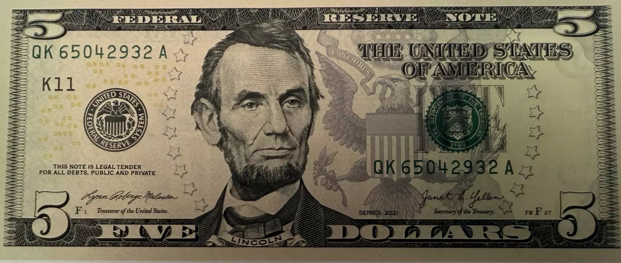 Billet USA 5 Dollars - K11 Dallas - Lincoln Mémorial - 2021 - Série K11 Dallas
