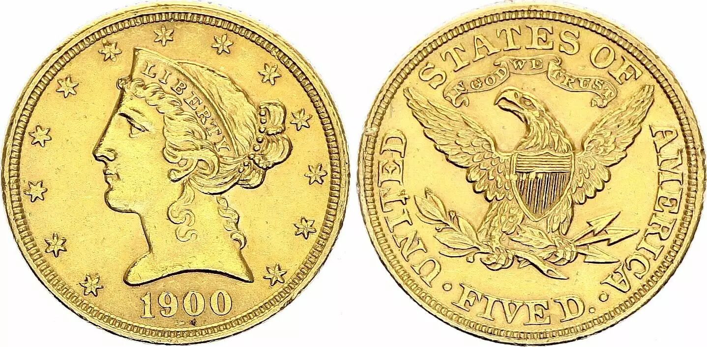 Home > > USA 5 Dollars Liberty - Eagle Coronet Head - 1900 Gold