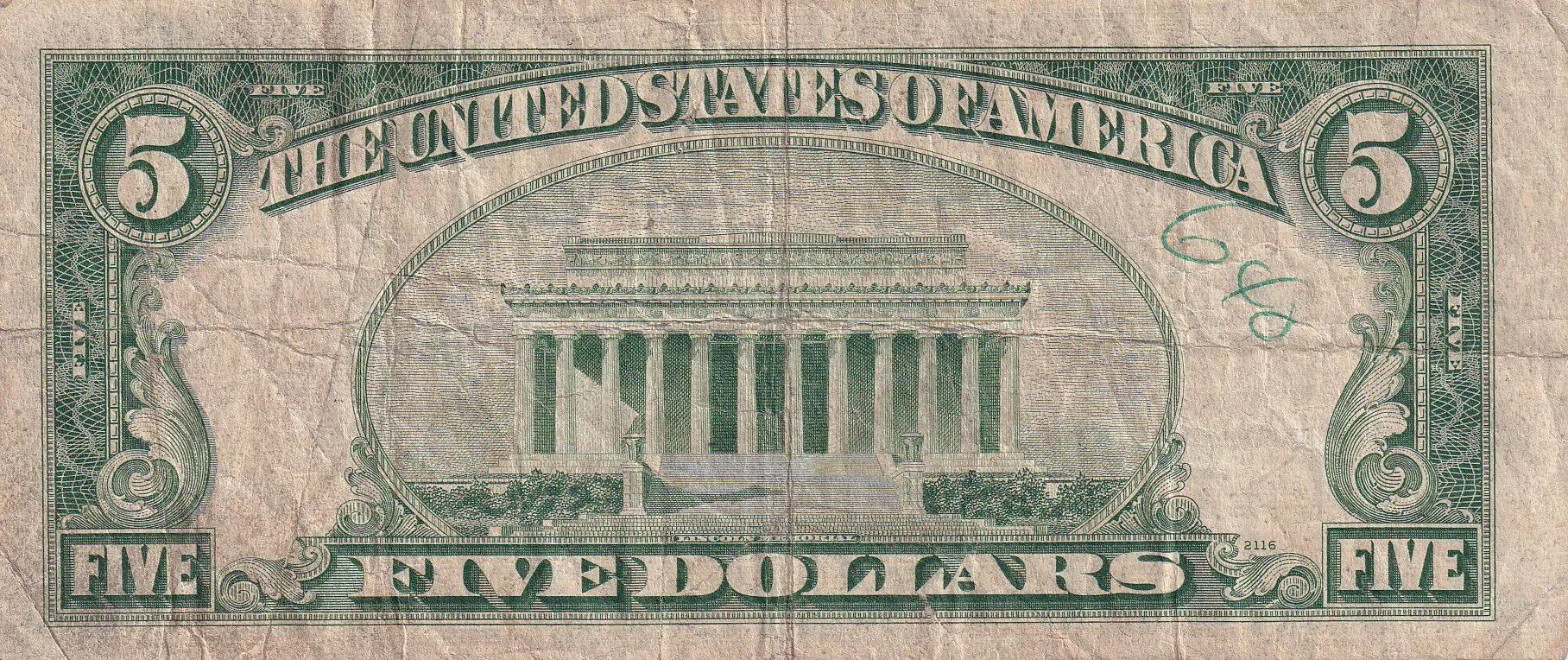 Banknote USA 5 Dollars - Lincoln - Lincoln Memorial - 1953 - F - P.417