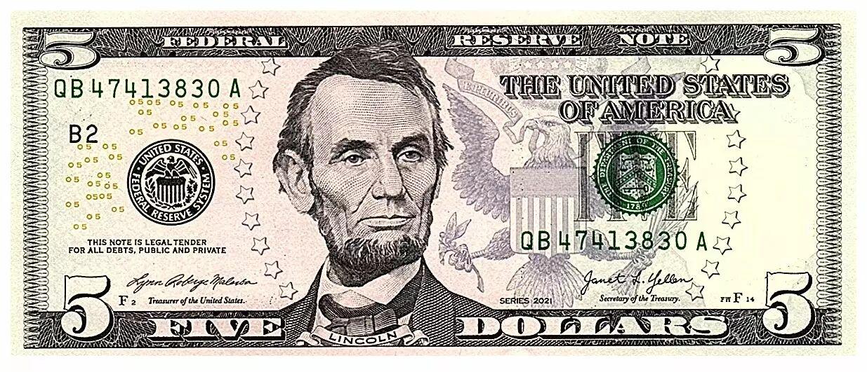 Banknote USA 5 Dollars Lincoln - Lincoln Mémorial 2021 - B2 New-York