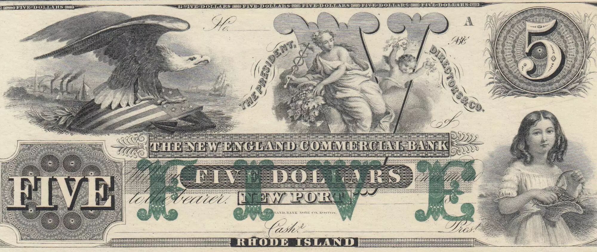 Accueil > Archivage > archivage-Billets du Monde > USA 5 Dollars - The New England Commercial Bank - Newport - Remainder - 1860