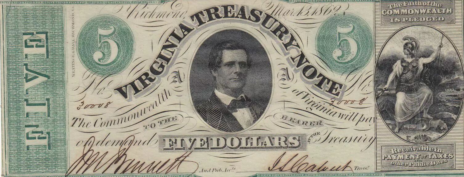 Billet USA 5 Dollars Virginia Treasury note - 1862 - NEUF