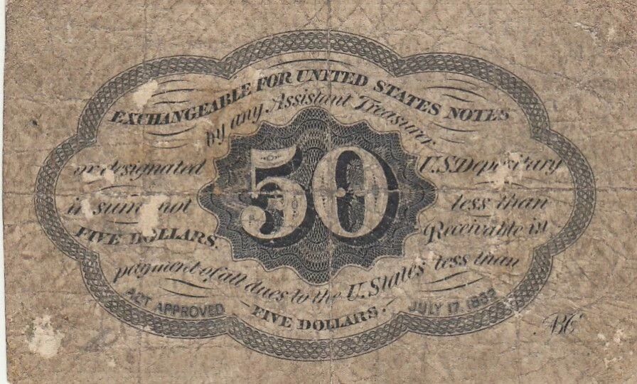 The face value of this note is 50 cents, a fraction of a dollar used for common transactions. The monetary unit is the cent, the smallest division of the US dollar at that time.