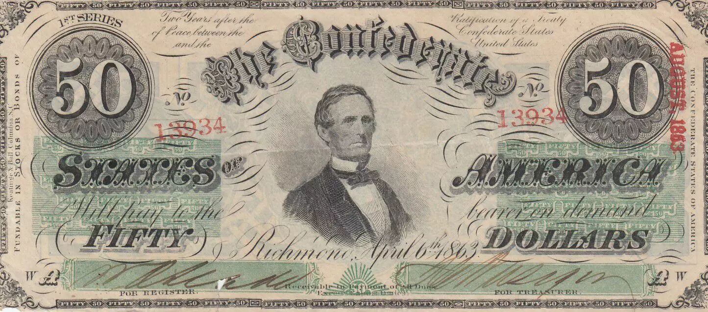 Accueil > Archivage > USA 50 Dollars Jefferson Davis - Confédérate States - 1863 - TTB - P.62