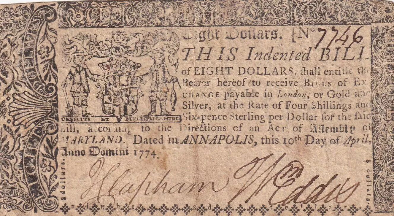 Banknote USA 8 Dollars - Maryland - Colonial - 10-04-1774