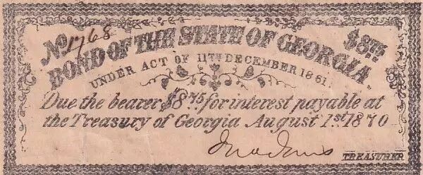 Billet USA 8.75 Dollars - Confédérate States - The treasury of Georgia - 1861