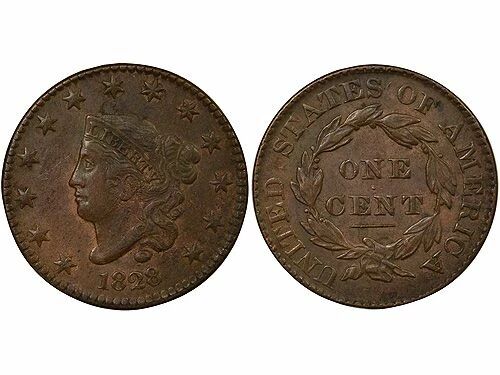 Pièce USA Cent, Coronet / Matron, Type 1 - 1828 Philadelphie