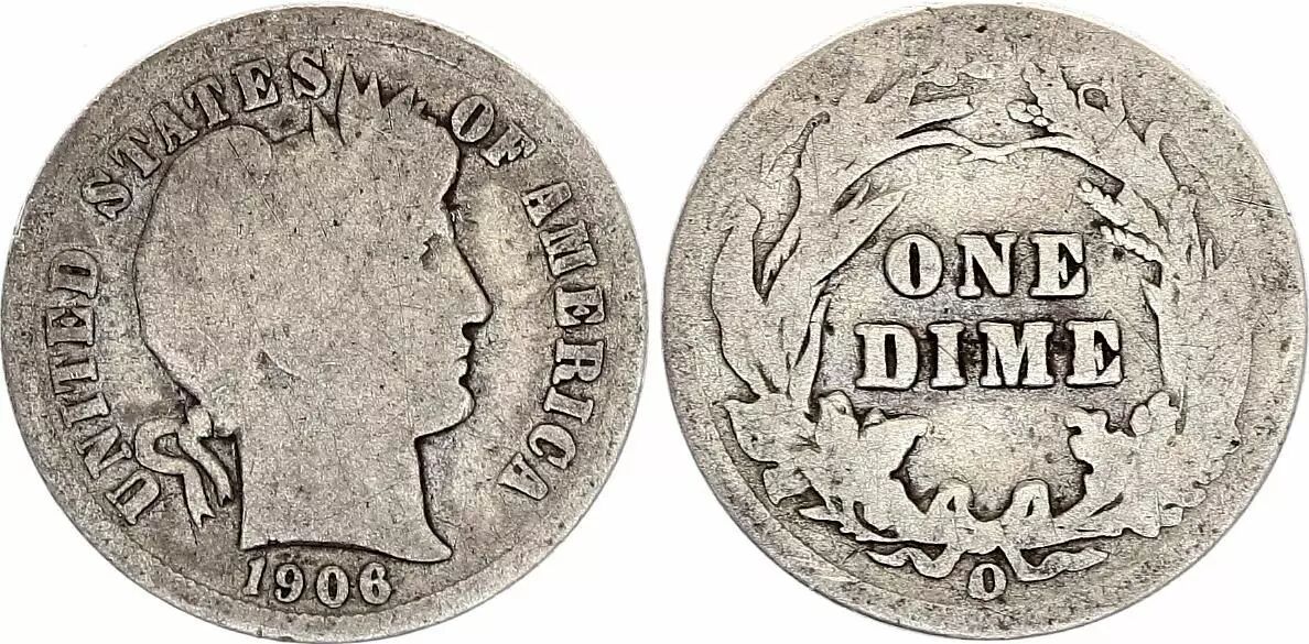 Pièce USA Dime Barber - 1906 - O Nouvelle-Orléans - Argent