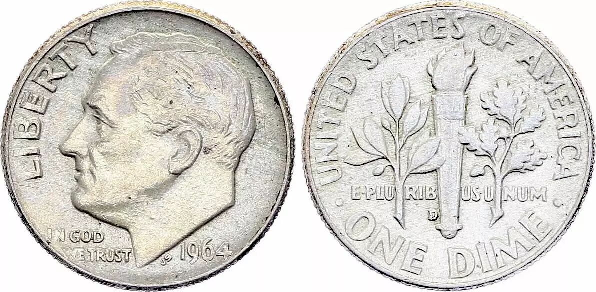 Pièce USA Dime Roosevelt - 1964 - D Denver - Argent