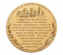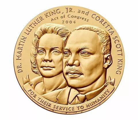 This medal honors Dr. Martin Luther King, Jr. and his wife Coretta Scott King for their many contributions to the Nation on behalf of the civil rights movement. It is a bronze duplicate of the Congressional Gold Medal awarded posthumously by President Obama – on behalf of Congress – to Dr. Martin Luther King, Jr. and Coretta Scott King. King delivered his “I have a dream” address in front of the Lincoln Memorial more than 50 years earlier on August 23, 1963.