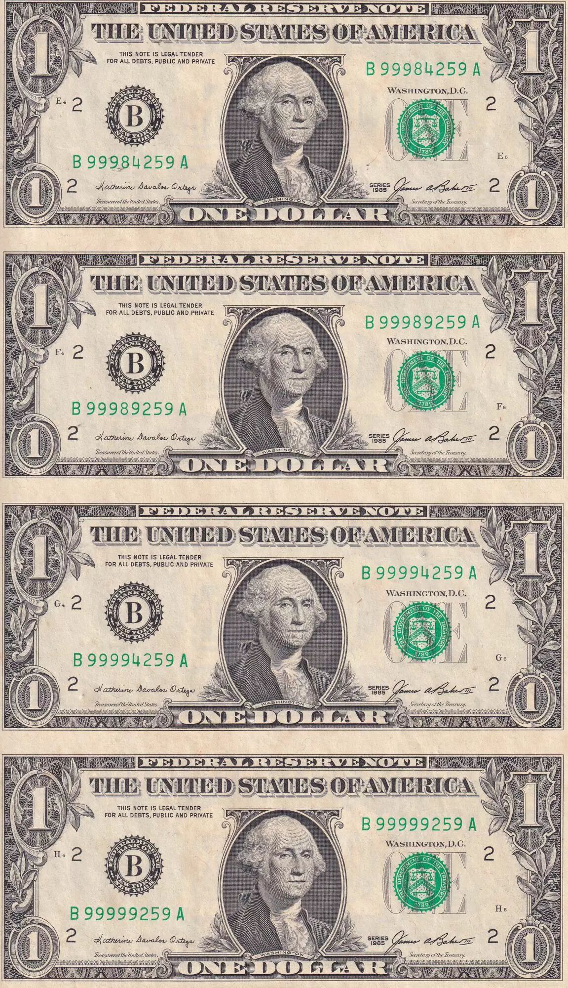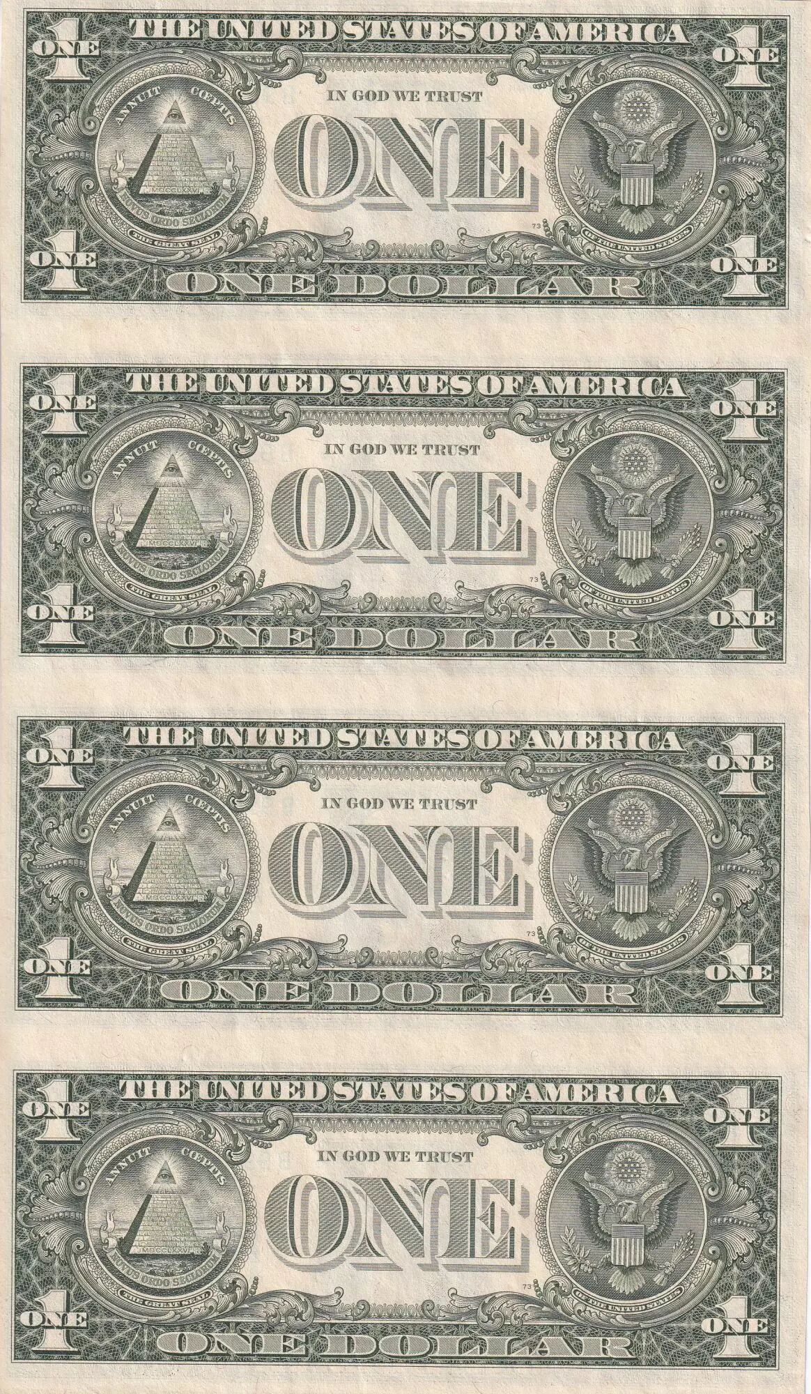 Billet USA Planche non découpée de 4 billets de 1 Dollar - George Washington - 1985 - Lettre B