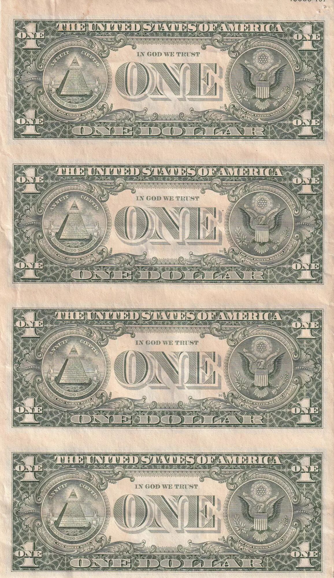 Accueil > Archivage > USA Planche non découpée de 4 billets de 1 Dollar - George Washington - 1985 - San Francisco (L)