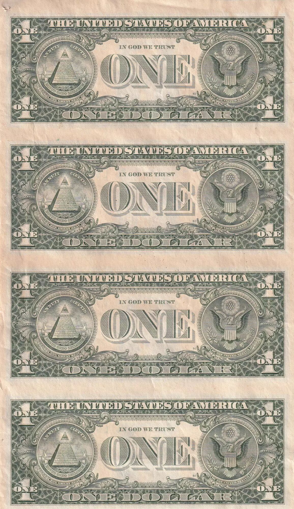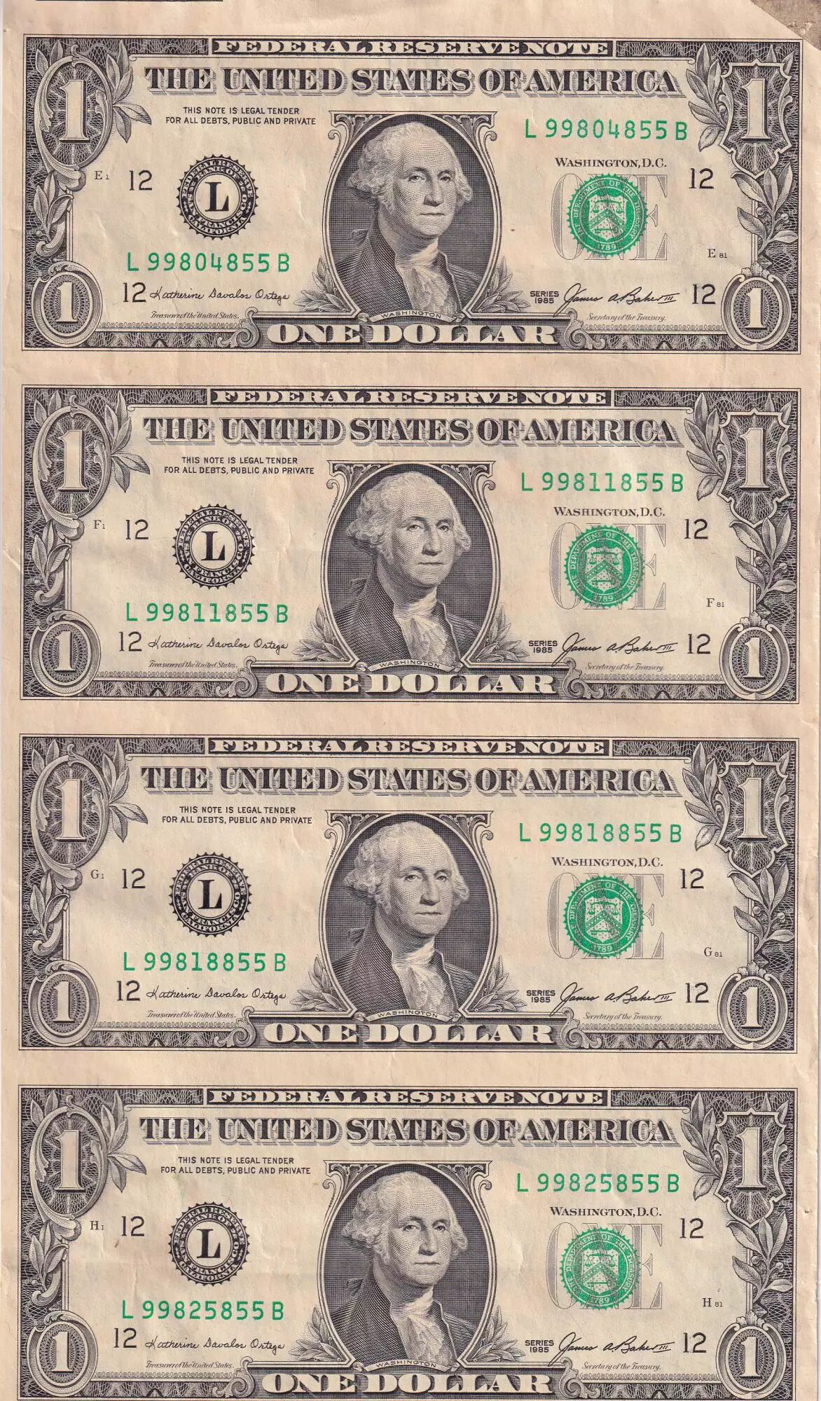 Home > > USA Sheet of 4 banknotes of 1 Dollar - George Washington - 1985 - San Francisco (L)