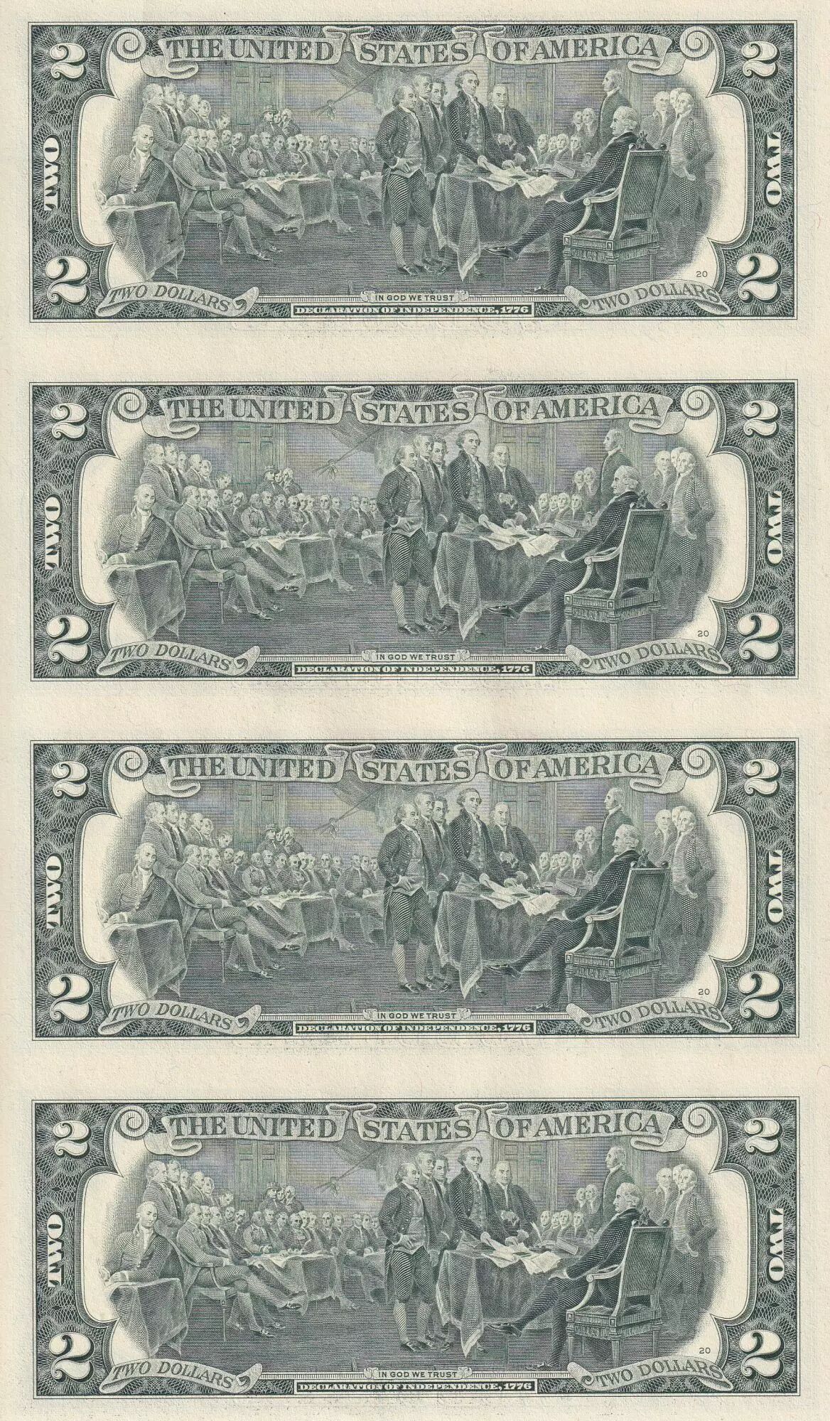 Home > > USA Sheet of 4 banknotes of 2 Dollars - Thomas Jefferson - 2009 - Lettrer K