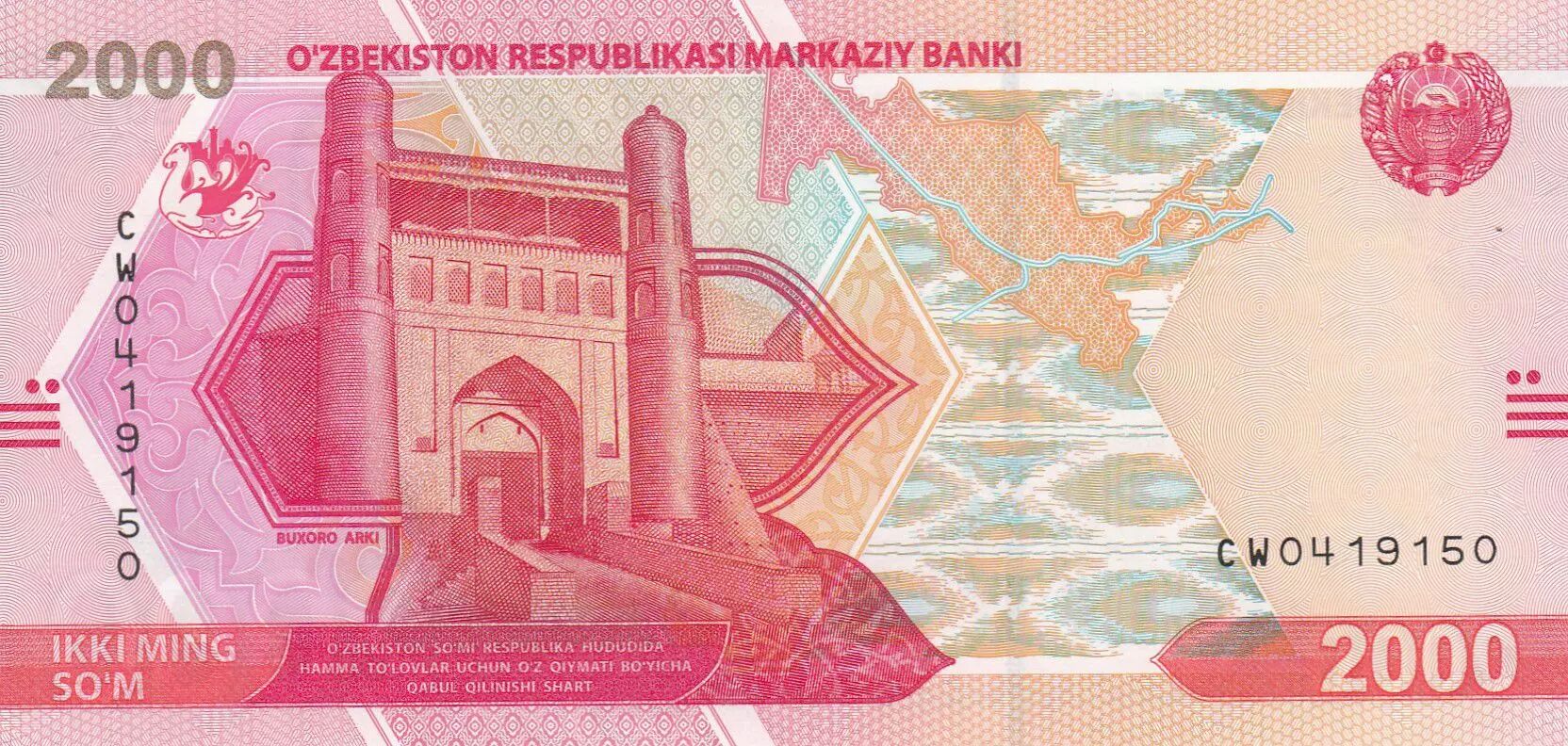 Home > World Banknotes > Asian Banknotes > Uzbekistan > Uzbekistan 2000 Som - Ark of Bukhara - 2021 - Serial CW - P.NEW