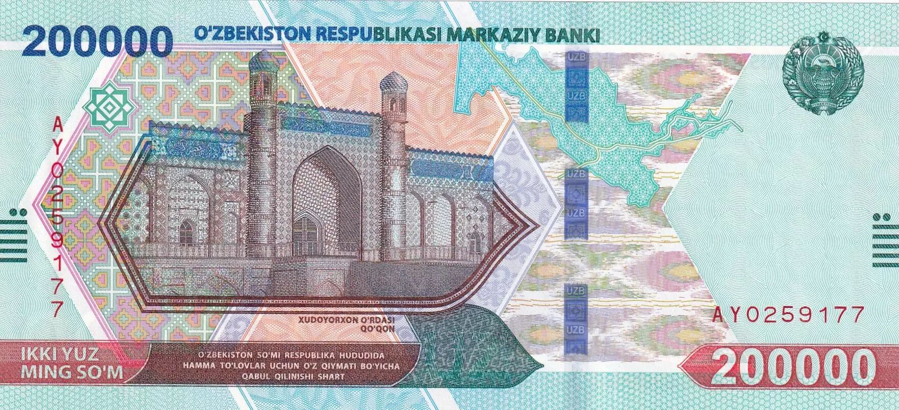 Home > > Uzbekistan 200000 Som - Xudoyorxon O'rdasi (Khan Palace) in Kokand - 2022