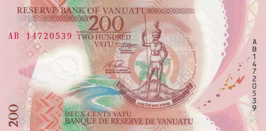 Home > World Banknotes > Oceania Banknotes > Vanuatu > Vanuatu 200 Vatu Melanesian Chief - Family - 2014 - Polymer - UNC - P.12
