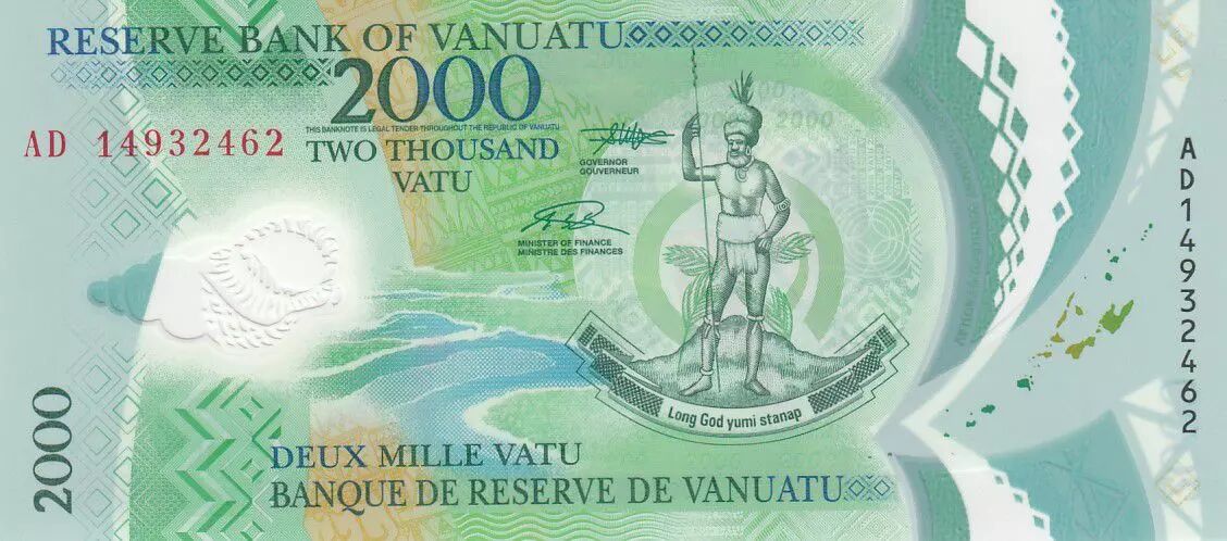 Home > > Vanuatu 2000 Vatu, Melanesian Chief - Birds 2014 - UNC - P.14