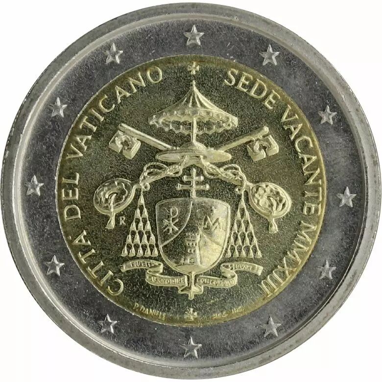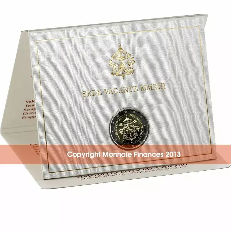 La pièce commémorative de 2 euros émise par le Vatican en 2013 souligne la période du Siège Vacant. Cette pièce a été frappée en qualité UNC (non circulée).