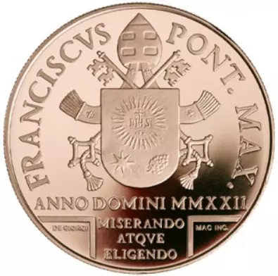 La pièce de cuivre de 20 euros dédiée à la série " Art et Foi " est enrichie cette année d'un détail de la coupole de la Basilique Saint-Pierre. L'artiste Cristina De Giorgi a reproduit au revers de la pièce l'élévation supérieure de la façade de la basilique où l'on peut admirer la coupole dans toute sa majesté. De chaque côté nous voyons les deux coupoles plus petites et les 13 statues qui ornent la balustrade au-dessus de l'entrée principale de la basilique Saint-Pierre. De nombreux architectes et artistes de renom ont contribué à la conception et à la construction de la coupole dès le début des années 1500 et pendant près d'un siècle : Donato Bramante Raffaello Sanzio et surtout Michelangelo Buonarroti. Il s'agit de l'un des plus grands toits en maçonnerie jamais construits un symbole à la fois de l'Église de Rome et de la créativité humaine.