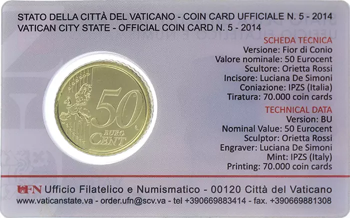 Pièce Vatican 50 centimes euros 2014 Vatican - SOUS BLISTER (Coincard n°5)