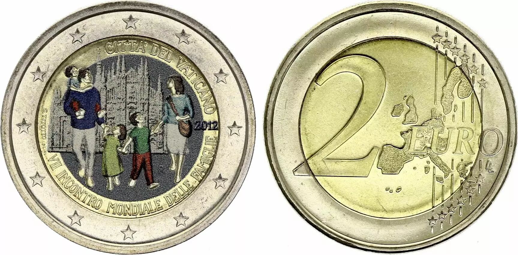 Coin Vatican City State 2 Euros - 7th World meeting of family - Colorised - 2012